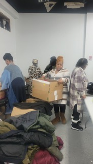 We distributed 24 backpacks, each filled with blankets, hygiene items, hats, gloves, scarves, socks, hand warmers, snacks, and more, along with 30 warm coats. Hot coffee and warm apple cider were also shared to bring warmth and comfort on a cold day. A brochure regarding the Milwaukee Assembly and additional available emergency resources were also provided.